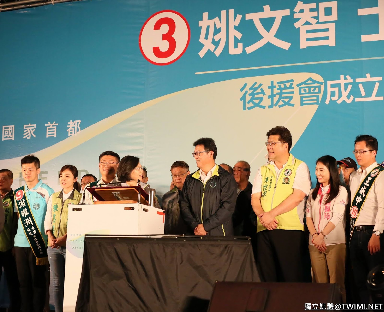 總統暨民主進步黨主席蔡英文今天(10/20)出席台北市長候選人姚文智士林北投後援會成立授旗授證大會。蔡英文致詞時表示,姚文智是民進黨「青壯世代」最好的人才,替大家服務、替台北市打拚。她相信台北市民,一定有看到姚文智的打拚,給認真的姚文智,來擔台北市這個重擔,讓姚文智來做,他一定是最好的市長。